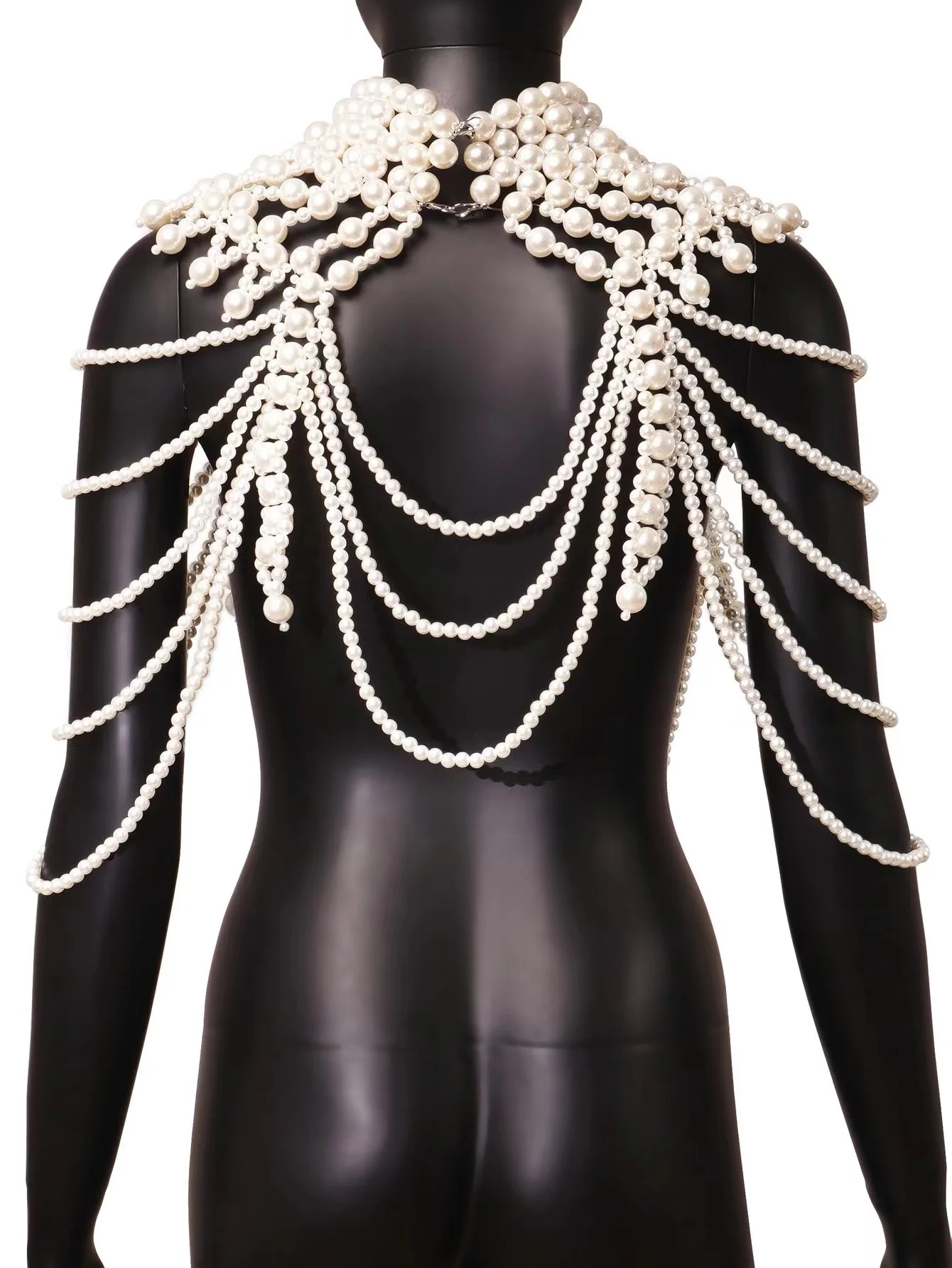 Most Popular Luxury Pearl Body Chain Vest Instagram Blogger with European Hand-Beaded Pearl Shoulder Chain Jewelry